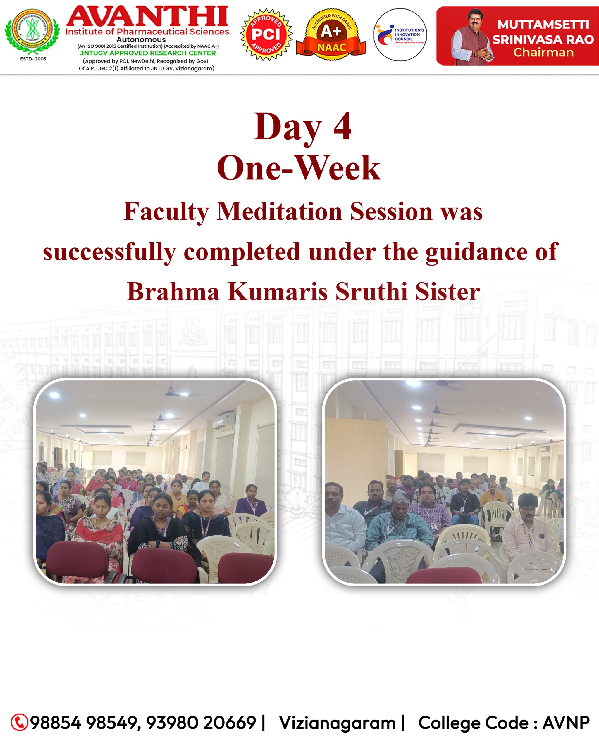 AIPS Conducted a one week (04-02-2026 to 09-02-2026) personality development program for faculty by brahma kumaris.This meditation session was successfully completed under the guidance of Brahma Kumaris Sruthi Sister.