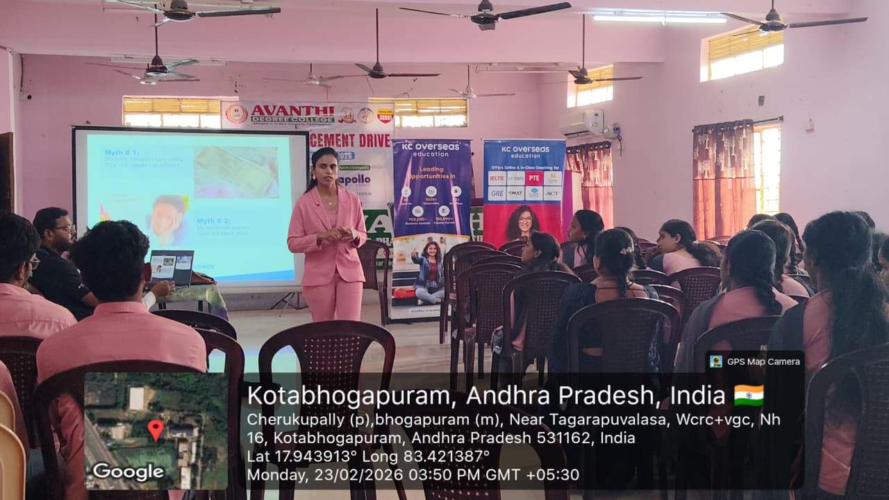 A career guidance session on 23-02-2026 on international education and global career opportunities was organized for III B.Pharmacy students. The session was conducted by KC Overseas Education and led by Ms. K. Guna Lakshmi, Centre Director. She provided detailed information on higher studies abroad, admission procedures, scholarship opportunities, visa processes, and career prospects in various countries, helping students plan their future academic pathways effectively.