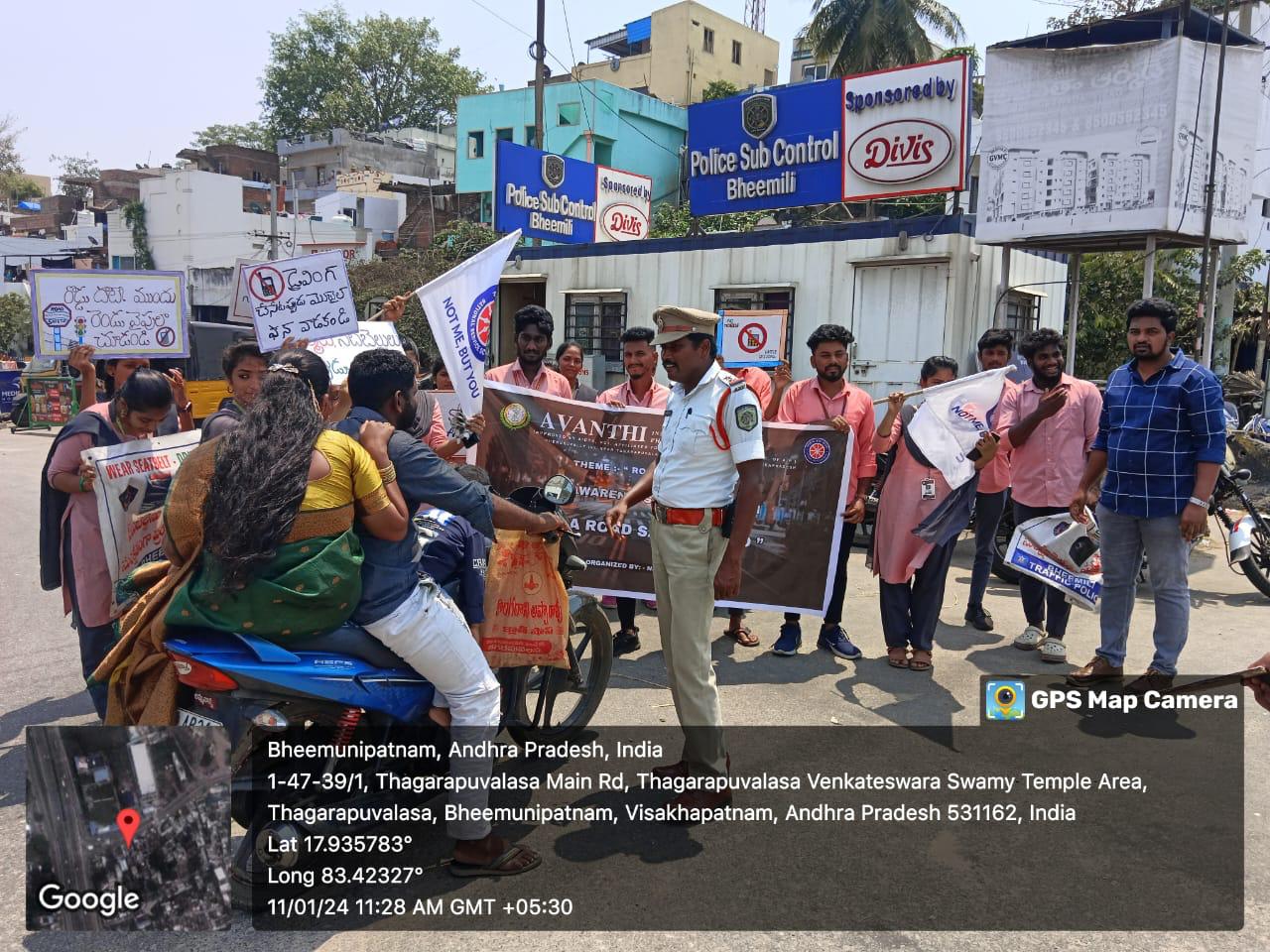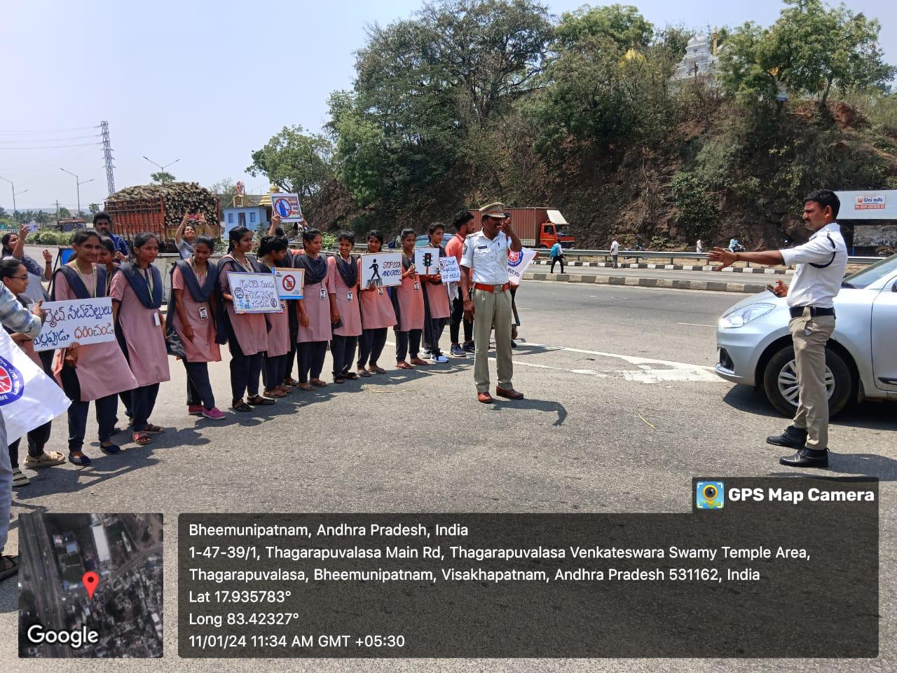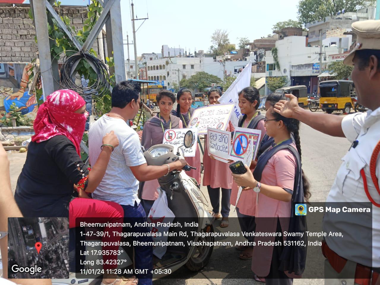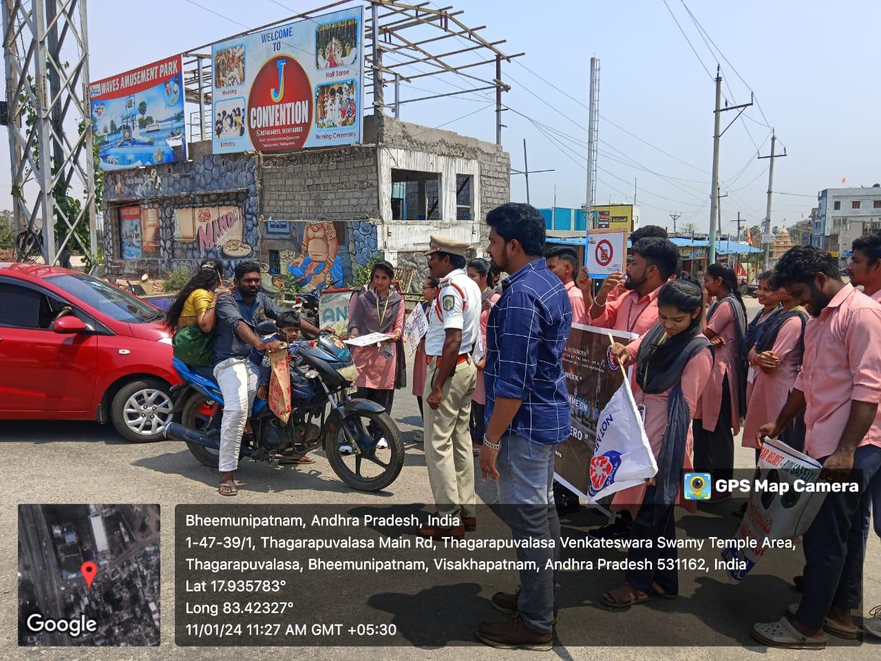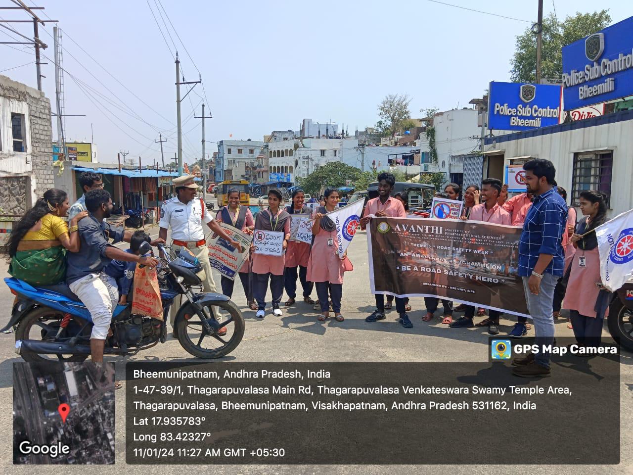 B.Pharmacy 2nd year students participated in awareness program on Road Safety Week at Bheemunipatnam