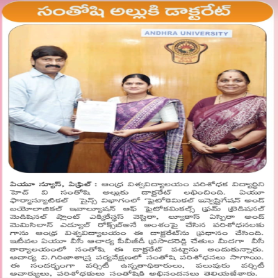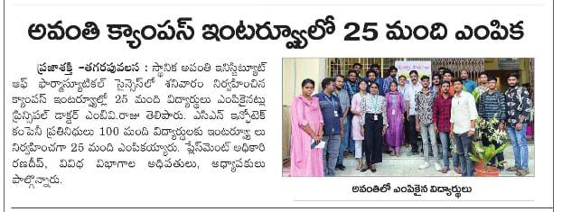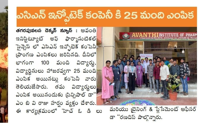 An impressive number of pharmacy students were being selected every year in National and Multinational companies. Pharmacy Department is highly acknowledged for