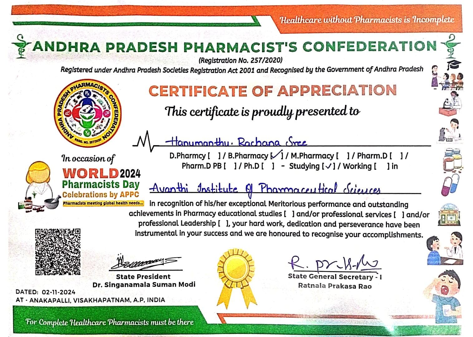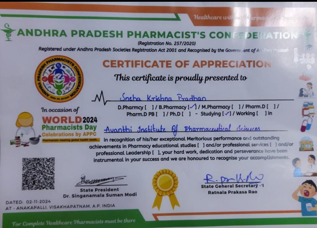 Avanthi Institute of Pharmaceutical Sciences Organized Awarwness Rally in Thagarapuvalasa village on 23rd September 2024 on the eve of World Pharmacists Day 2024