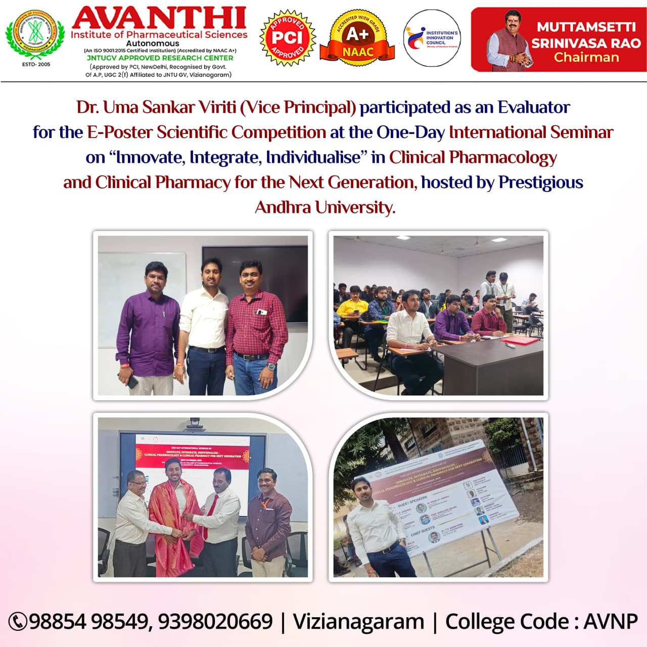 We are incredibly proud to announce a significant achievement by our esteemed Vice Principal, Dr. Uma Sankar Viriti.He has been invited to serve as an Evaluator for the E-Poster Scientific Session at a prestigious International Conference hosted by Andhra University. This notable selection is part of the 1-Day International Seminar focused on the theme: "Innovate, Integrate, Individualise, on 28-11-2025.