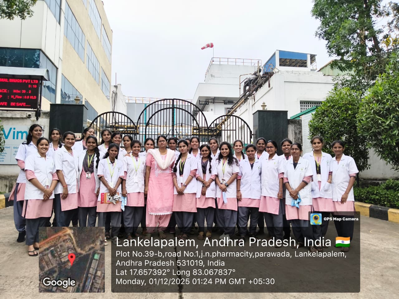 A three-day industrial visit to Vimal Drugs Pvt. Ltd., Visakhapatnam ,was organized for 4th-year B.Pharmacy students from 01-12-2024 to 03-12-2025 where they received an excellent demonstration and hands-on explanation of various analytical instruments.