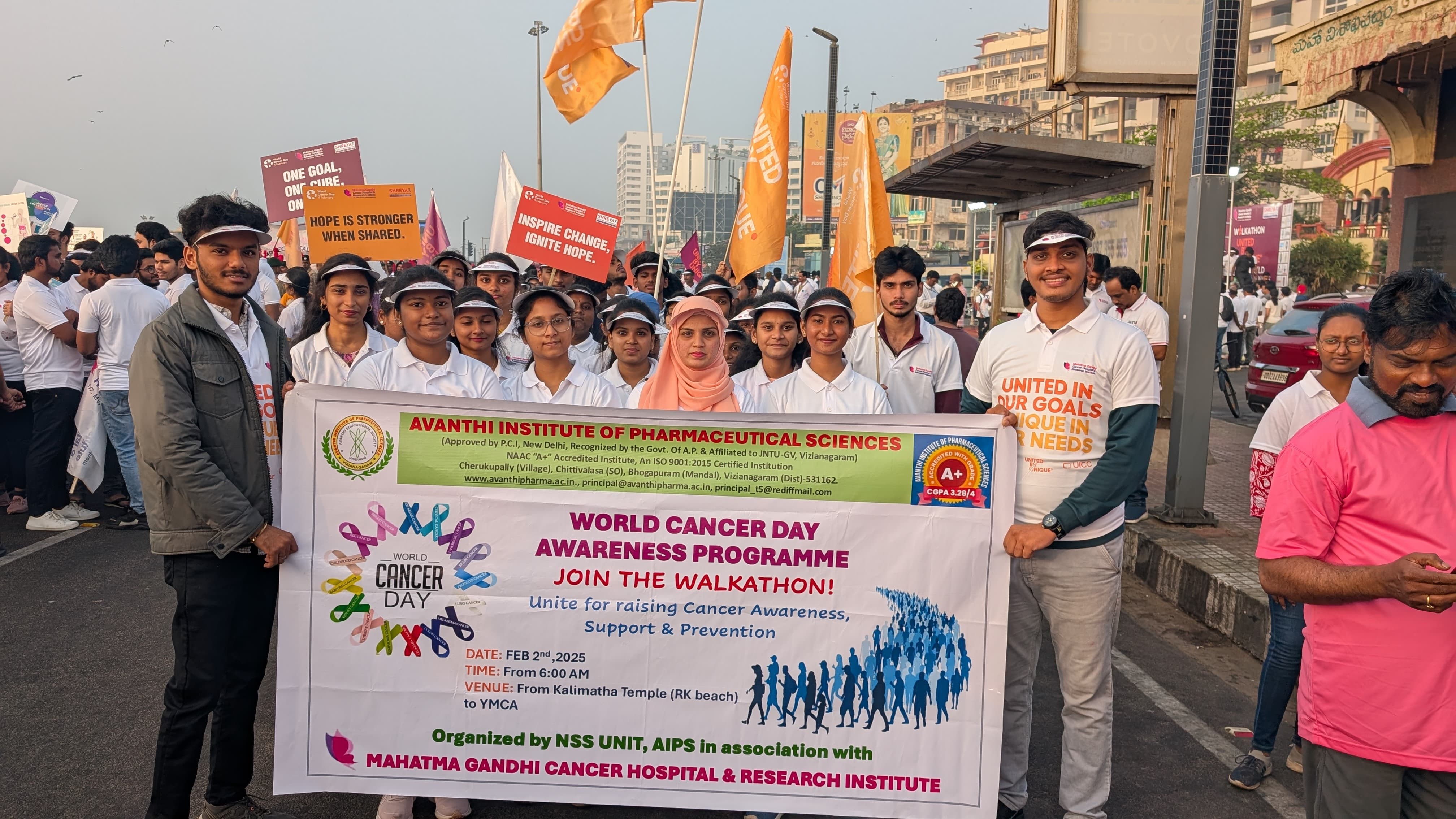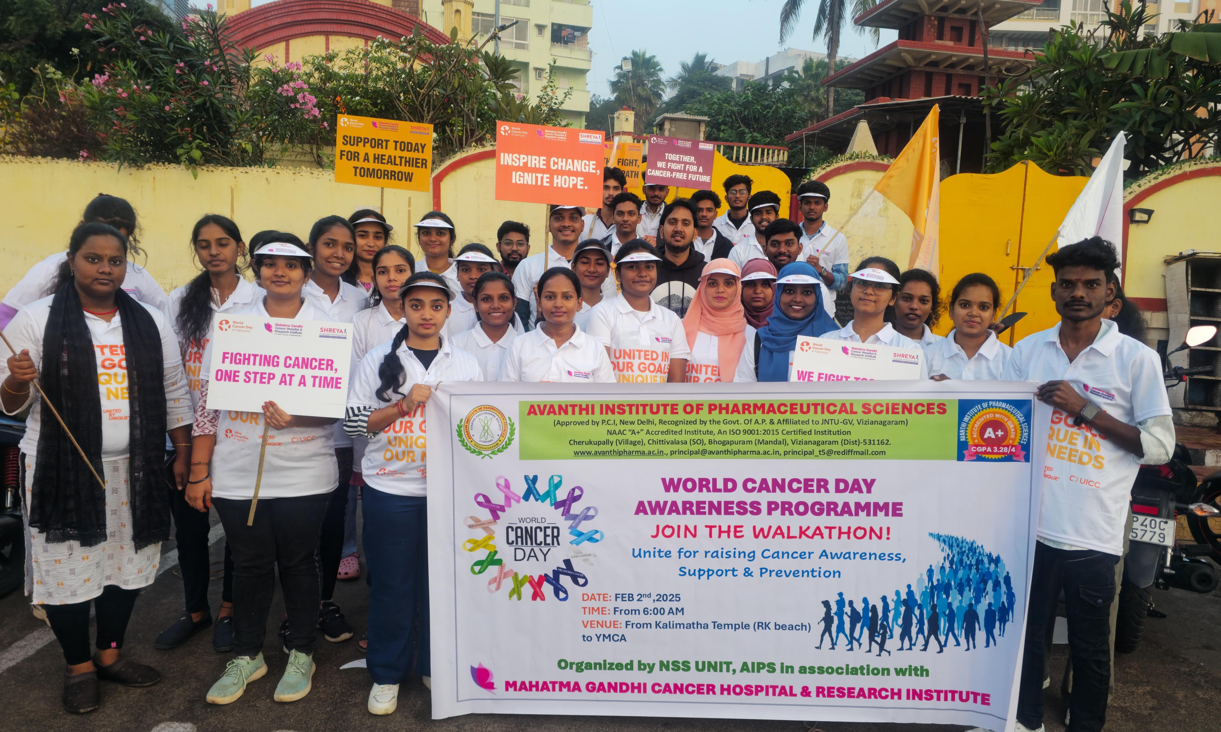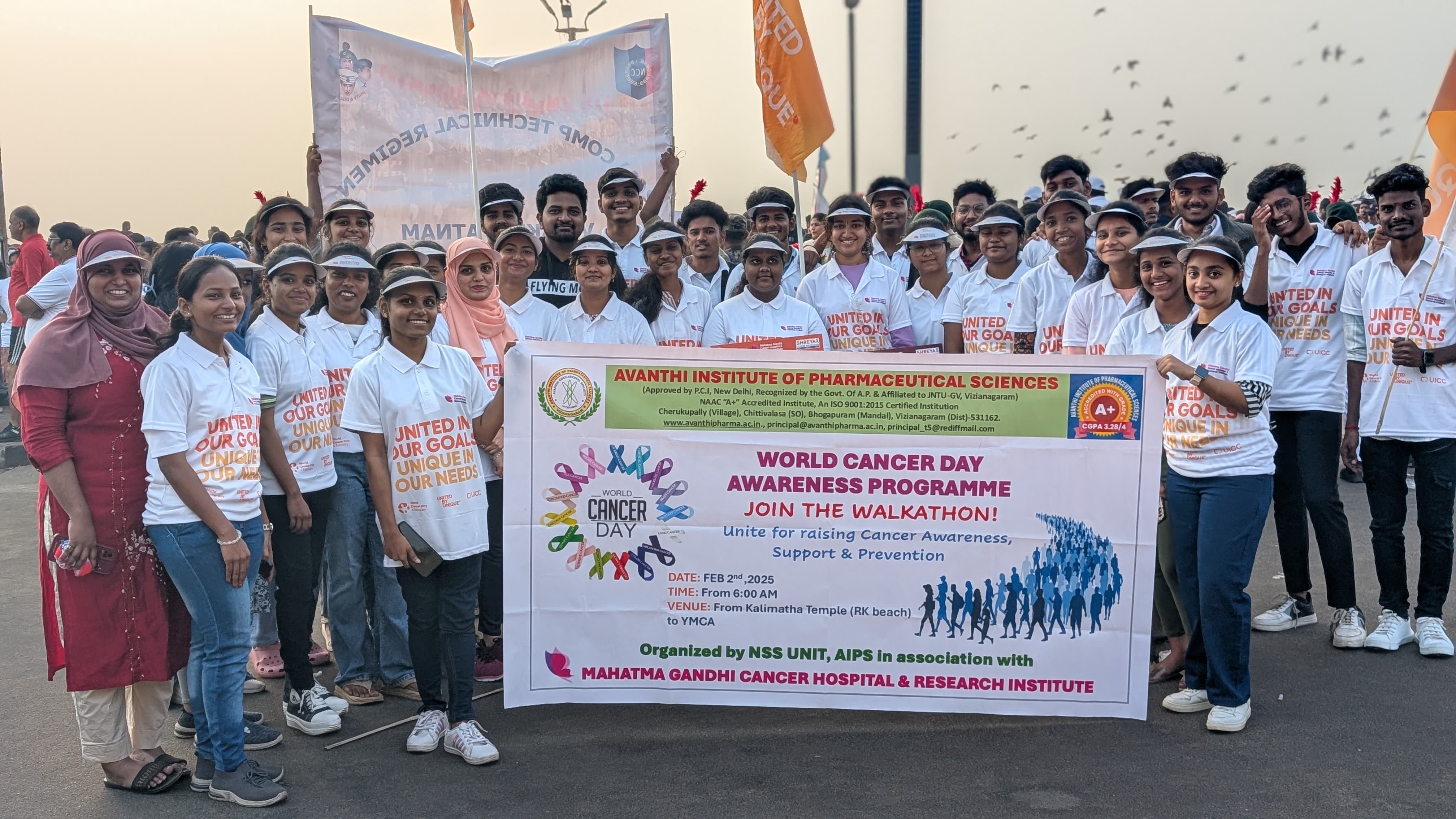 On the eve of World Cancer Day, our dedicated Avanthi Institute of Pharmaceutical Sciences students actively participated in a Walkathon at RK Beach, Visakhapatnam, raising awareness and showing support for the Fight Against Cancer on 2nd February 2025.