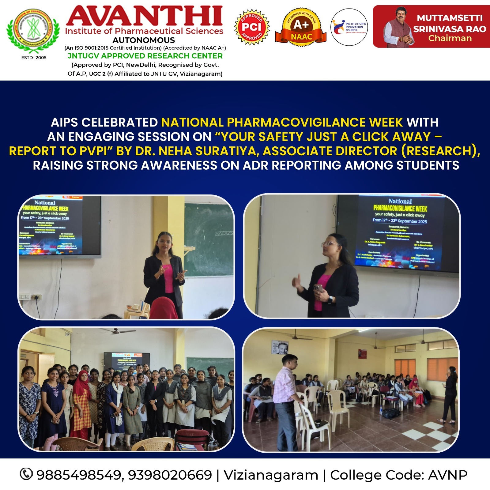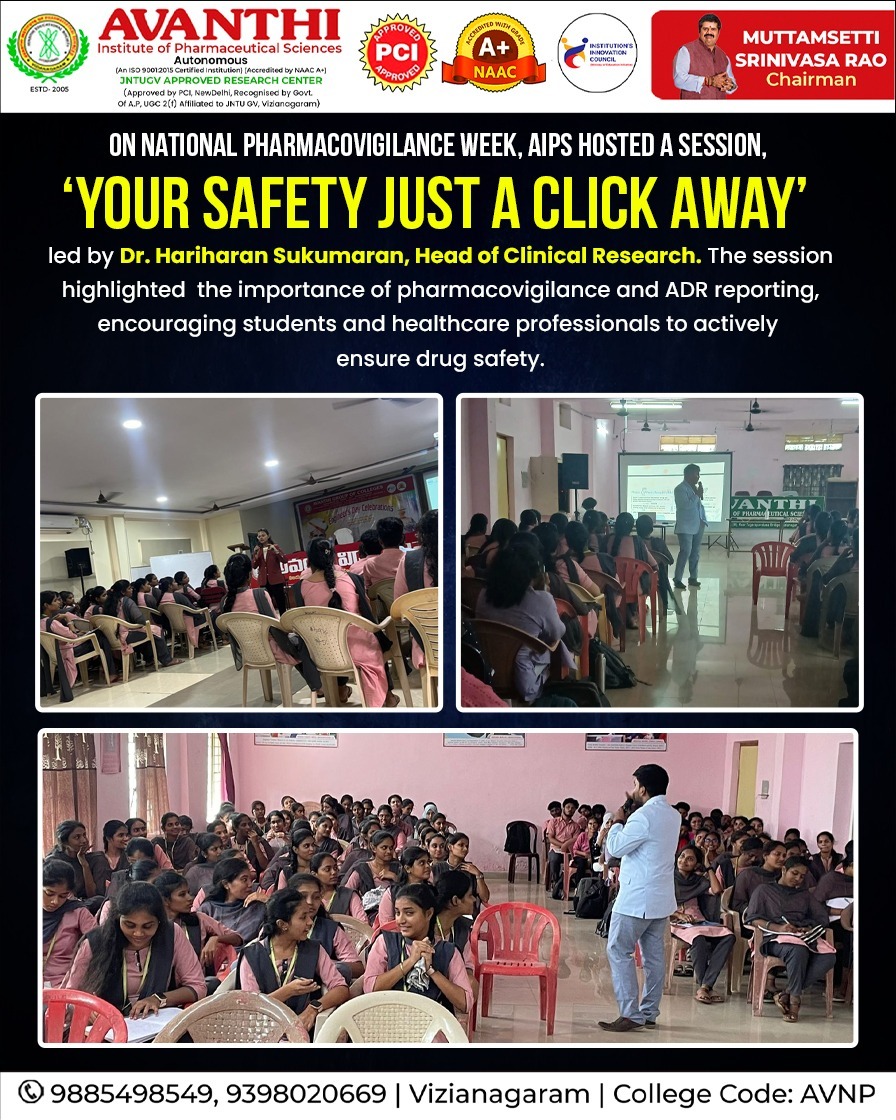 Aips organized National Pharmacovigilance Week(17-09-25 to 23-09-2025), The session was led by Dr. Akhika Reddy, Head of Clinical Research and Clinical Pharmacy. She delivered an insightful talk on the importance of Adverse Drug Reaction (ADR) reporting, emphasizing its role in ensuring patient safety, improving therapeutic outcomes, and strengthening the national pharmacovigilance program.