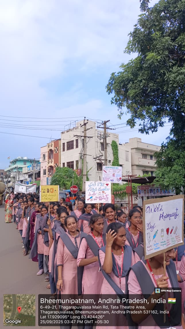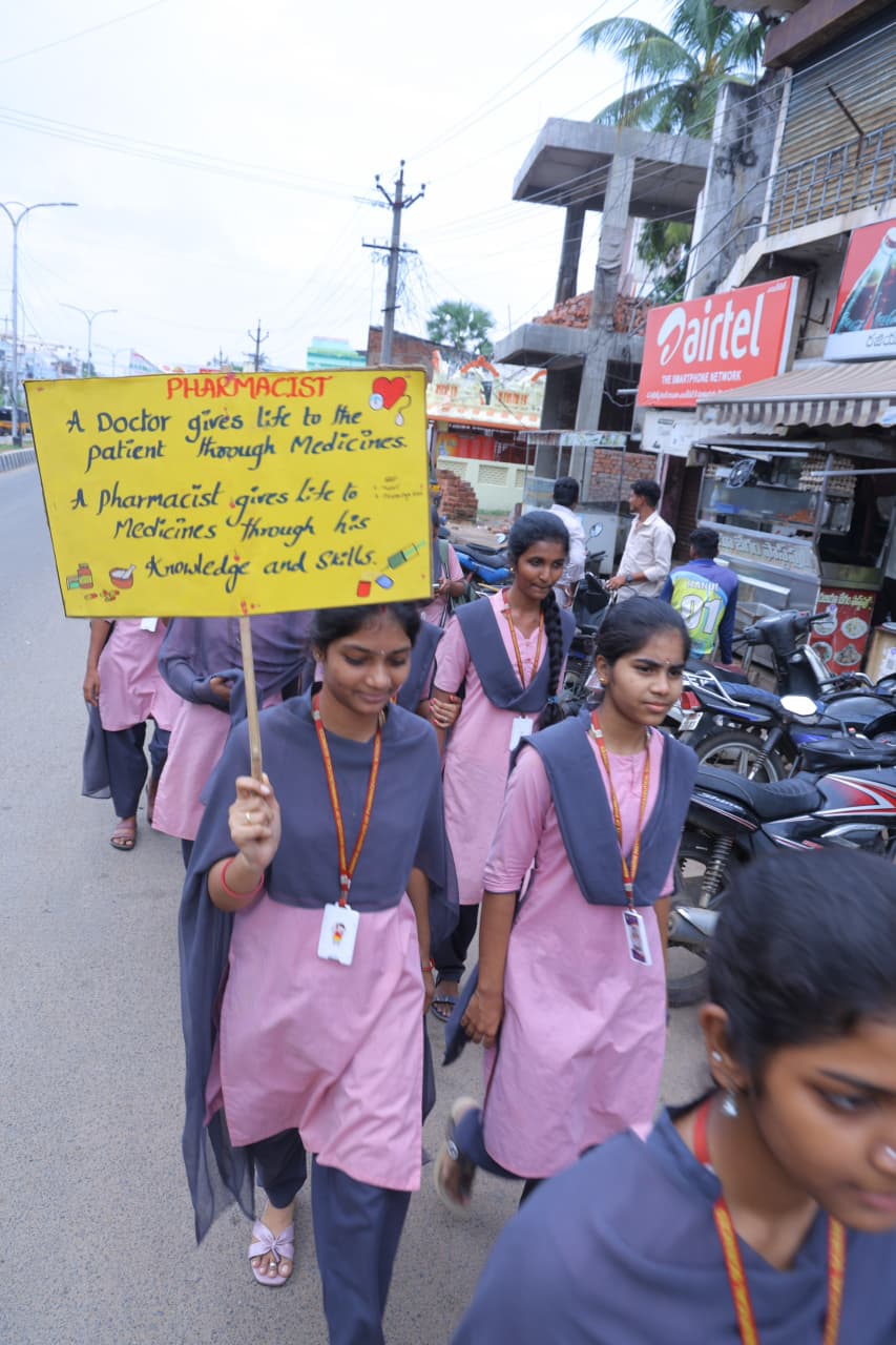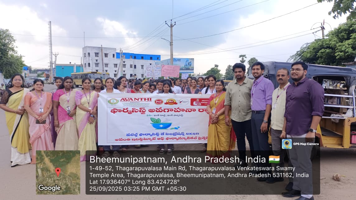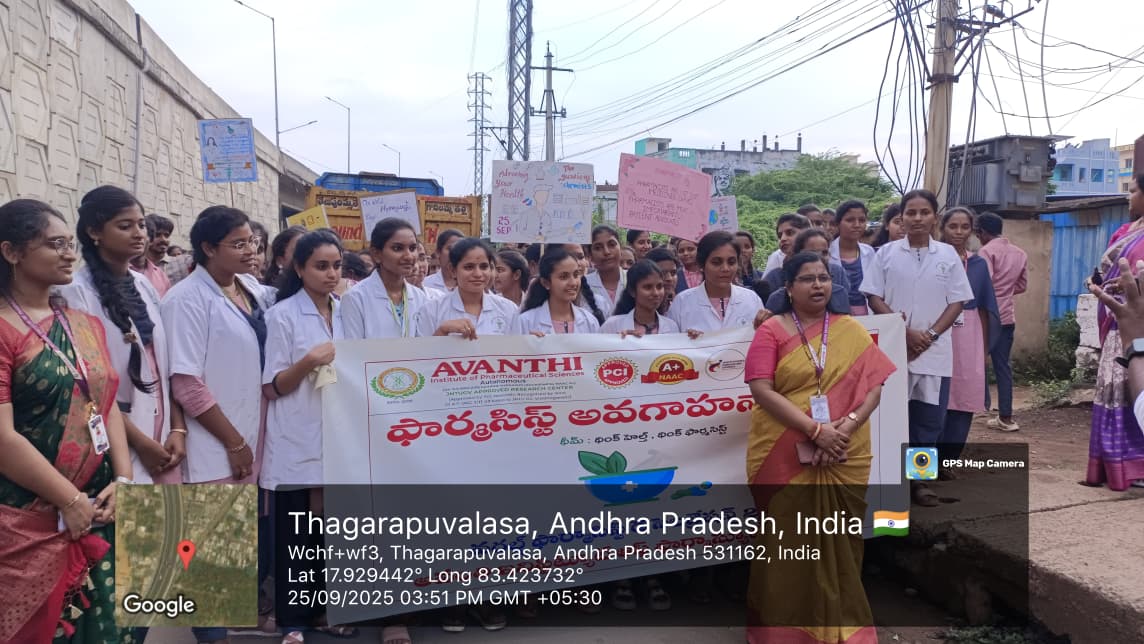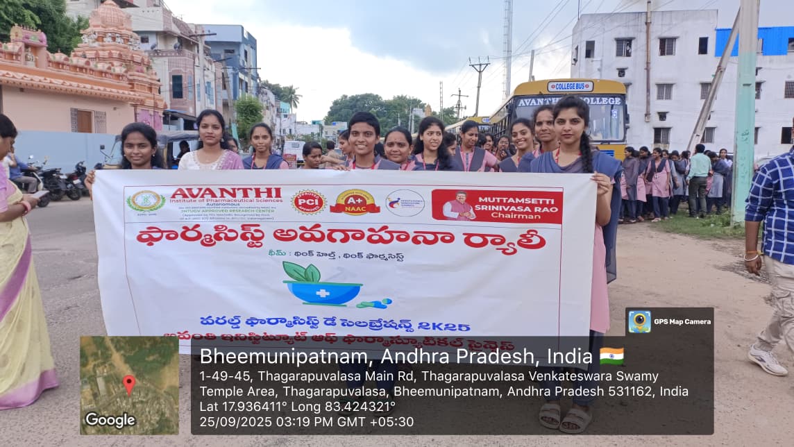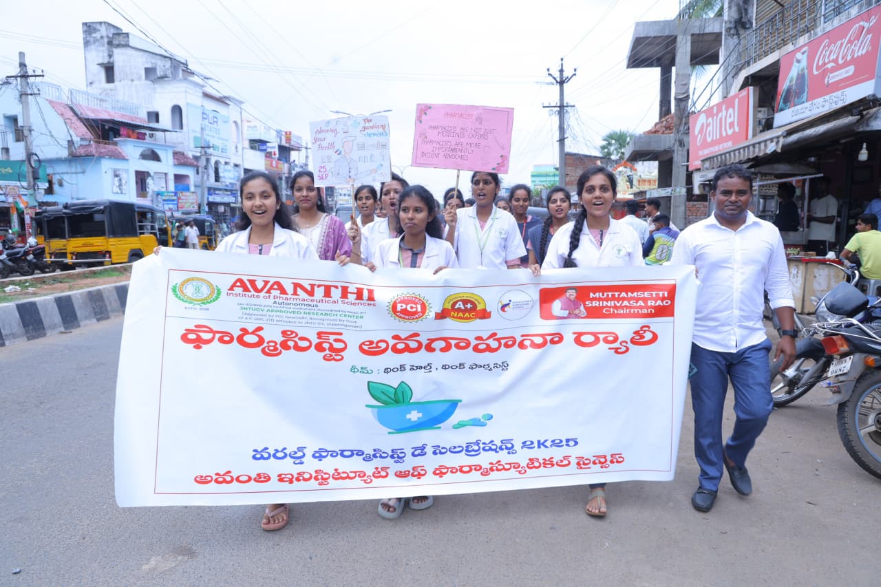 On the occasion of World Pharmacists Day, Avanthi Institute of Pharmaceutical Sciences organized a Pharmacist Awareness Rally at Thagarapuvalasa, emphasizing the global theme “Think Health, Think Pharmacist.” Students and faculty members enthusiastically participated in the rally, carrying informative placards and raising slogans to highlight the role of pharmacists in healthcare.